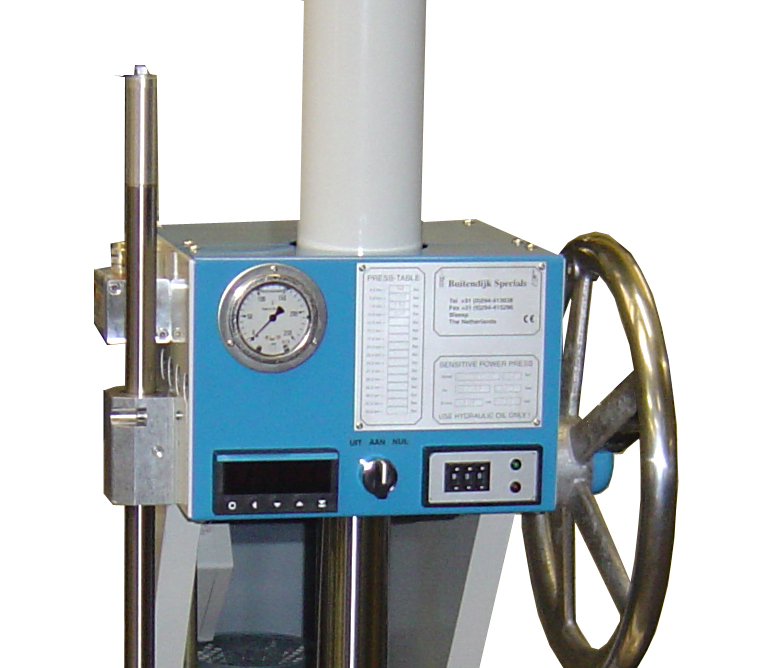 Gevoel met het handwiel ”beheerst persen” mogelijk door combinatie van het drukdoseersysteem. Het verplaatsen van de drukstang kan zowel bij enkele kilogrammen als bij vele tonnen op 0.1 mm nauwkeuring worden gedoseerd. Dit biedt